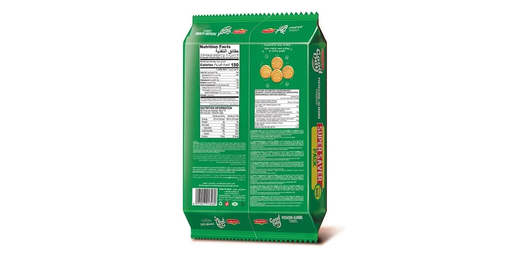 Wheat Flour, Sugar, Vegetable Fat (Palm), Invert Sugar, Almond, Cashew Bits, Pistachio, Whole Milk Powder & Butter (From Cow’s or Buffalo’s Milk), Ammonium Bicarbonate (E503(ii)) & Sodium Bicarbonate (E500(ii)) (Raising Agents), Salt, Emulsifiers (Soya Lecithin (E322)(i)), Mono & Diglycerides of Fatty Acids (Palm) (E471) & Diacetyl Tartaric Acid Esters of Mono & Diglycerides (Palm) (E472e), Nature Identical & Artificial Flavours (Butter & Almond, Milk, Vanilla), Beta Carotene (E160a(iii)) (Natural Colour). Contains Wheat (Gluten), Milk, Almond, Cashew, Pistachio & Soya.